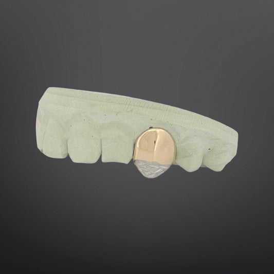 Two Tone Yellow Fangs And White Diamond Cut Tips With Back Bar Natural Gold