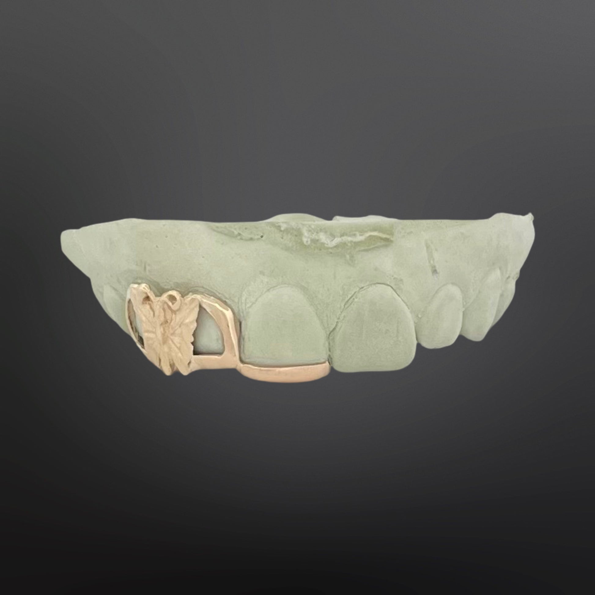 Butterfly On Top Of Open Face and Tip Cover Three Teeth Top Natural Gold 14K