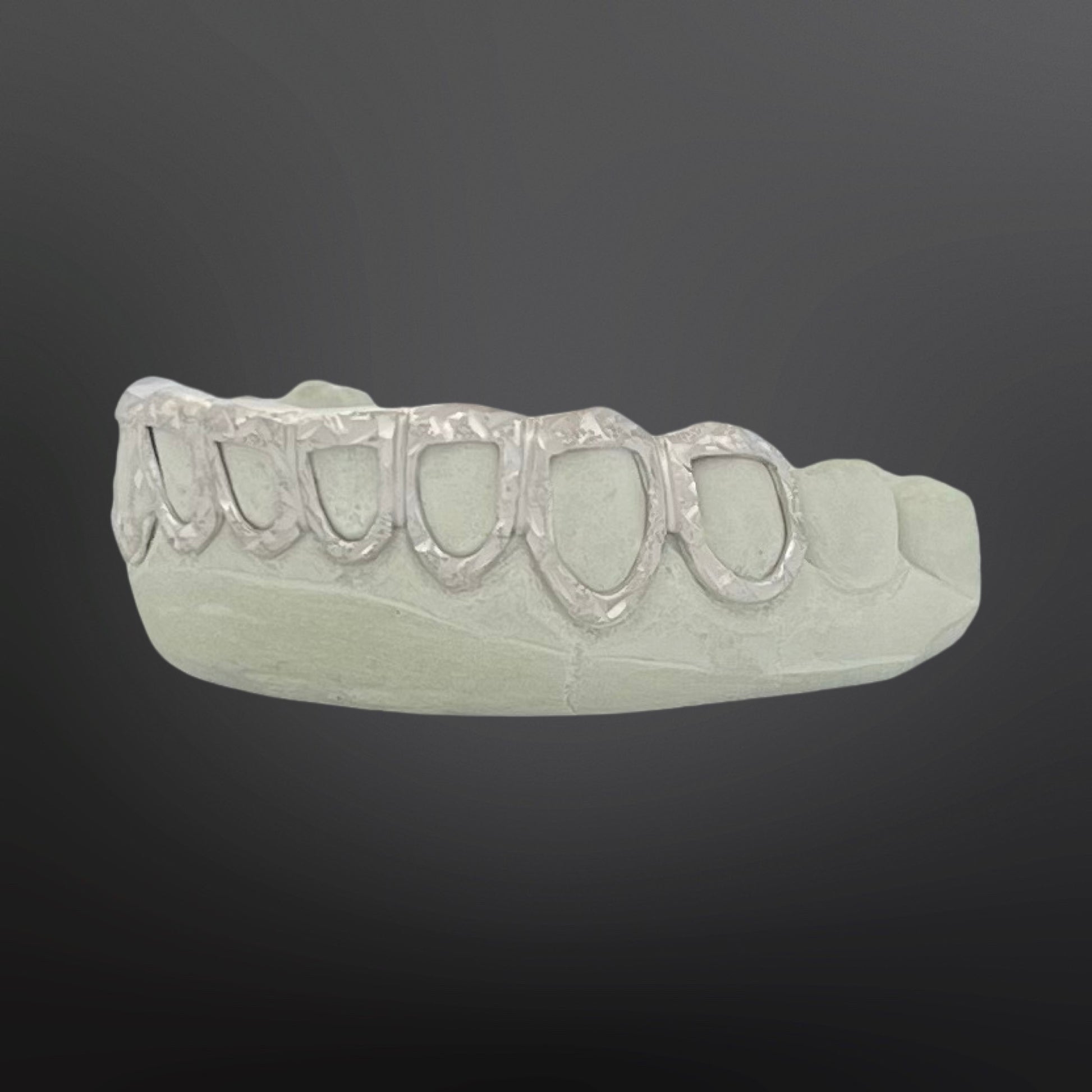Diamond Cut And Diamond Dust Open Face Eight Teeth Bottom Set Silver