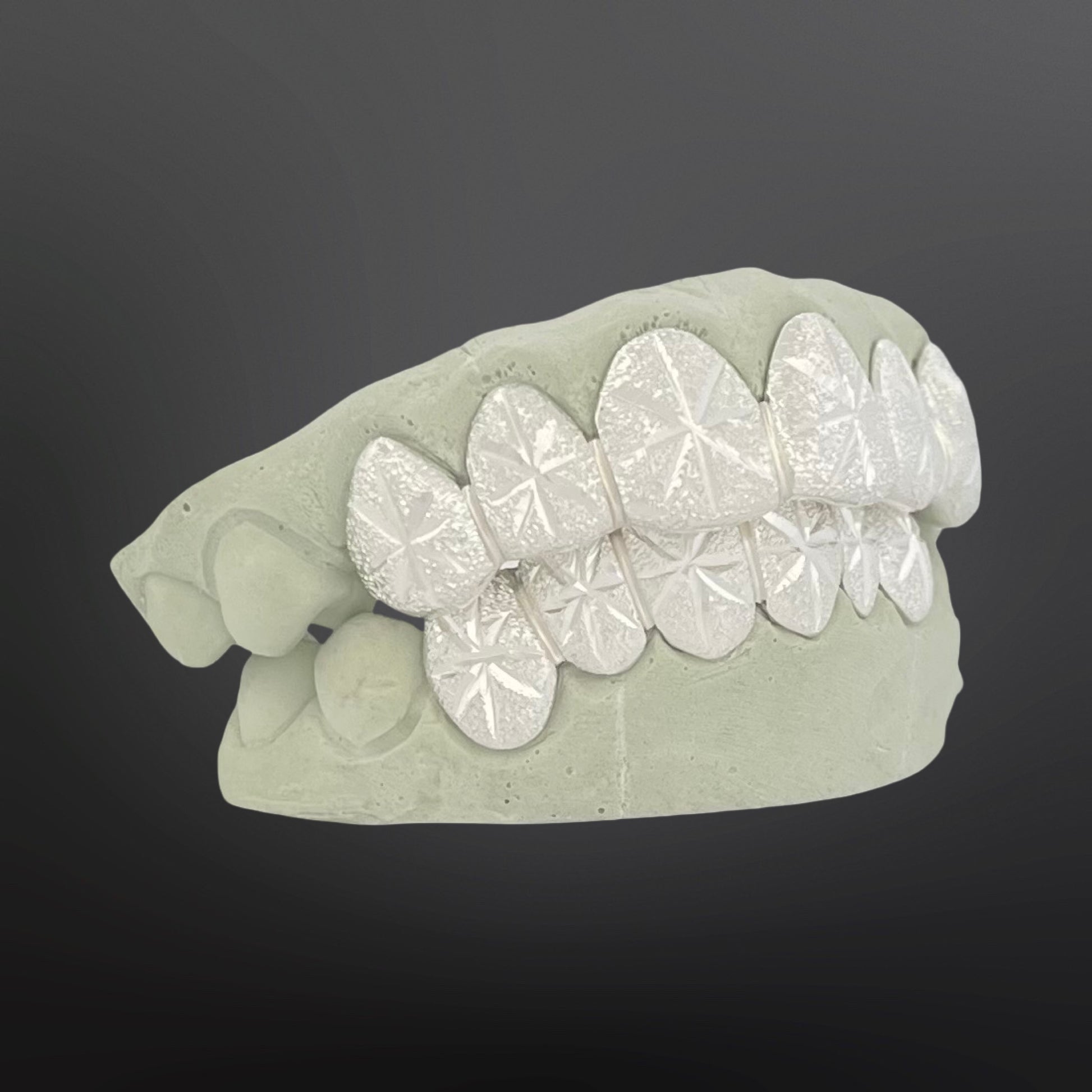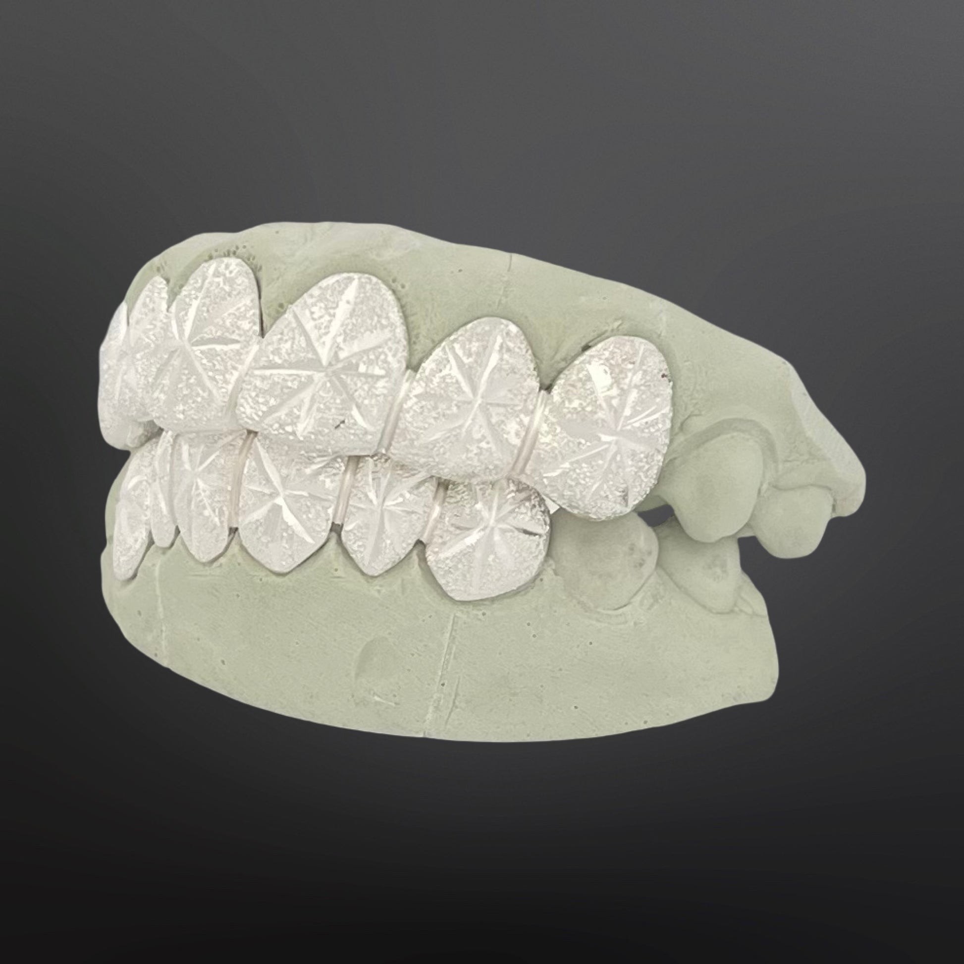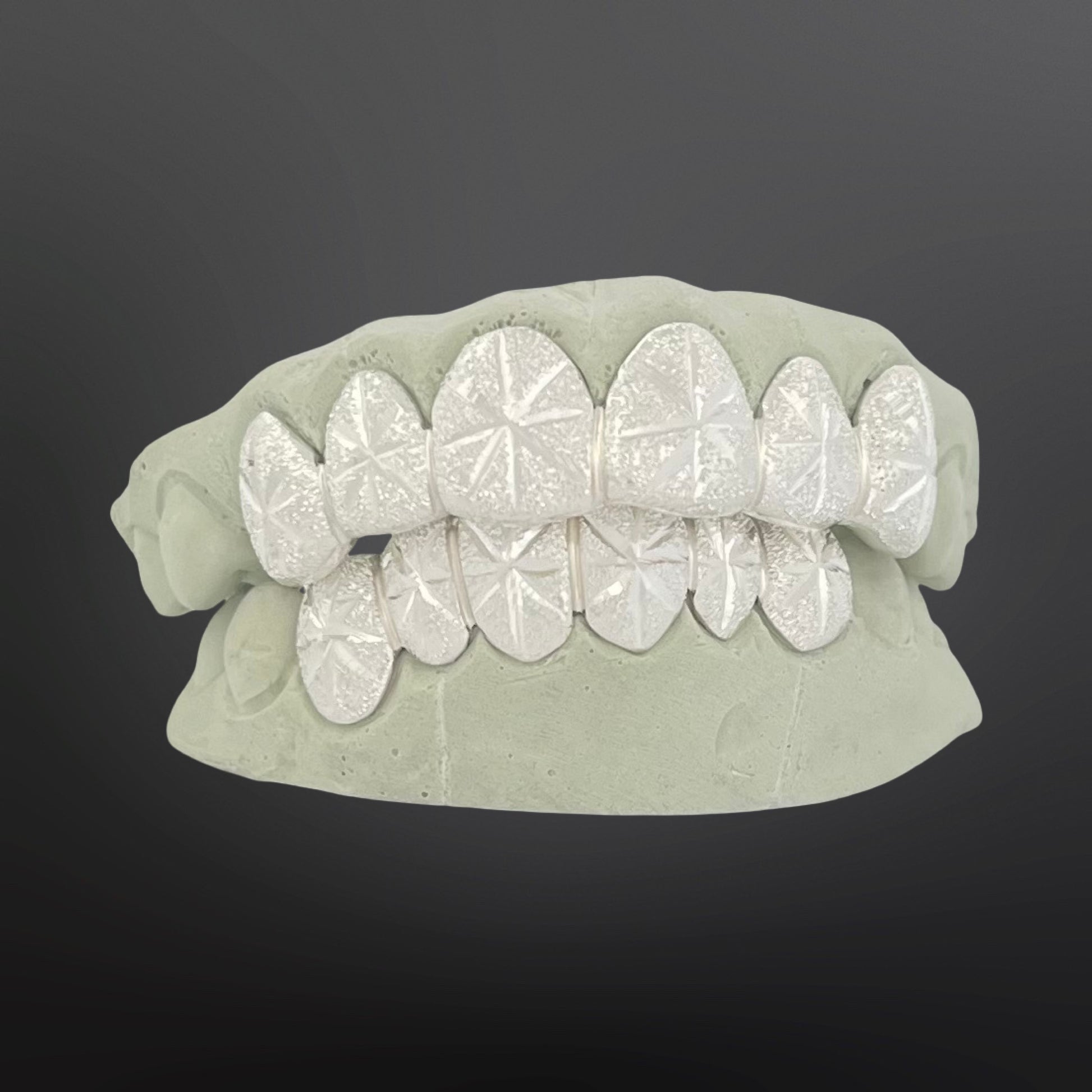 Diamond Dust And Starburst Cuts Six Top Six Bottom Full Set Silver