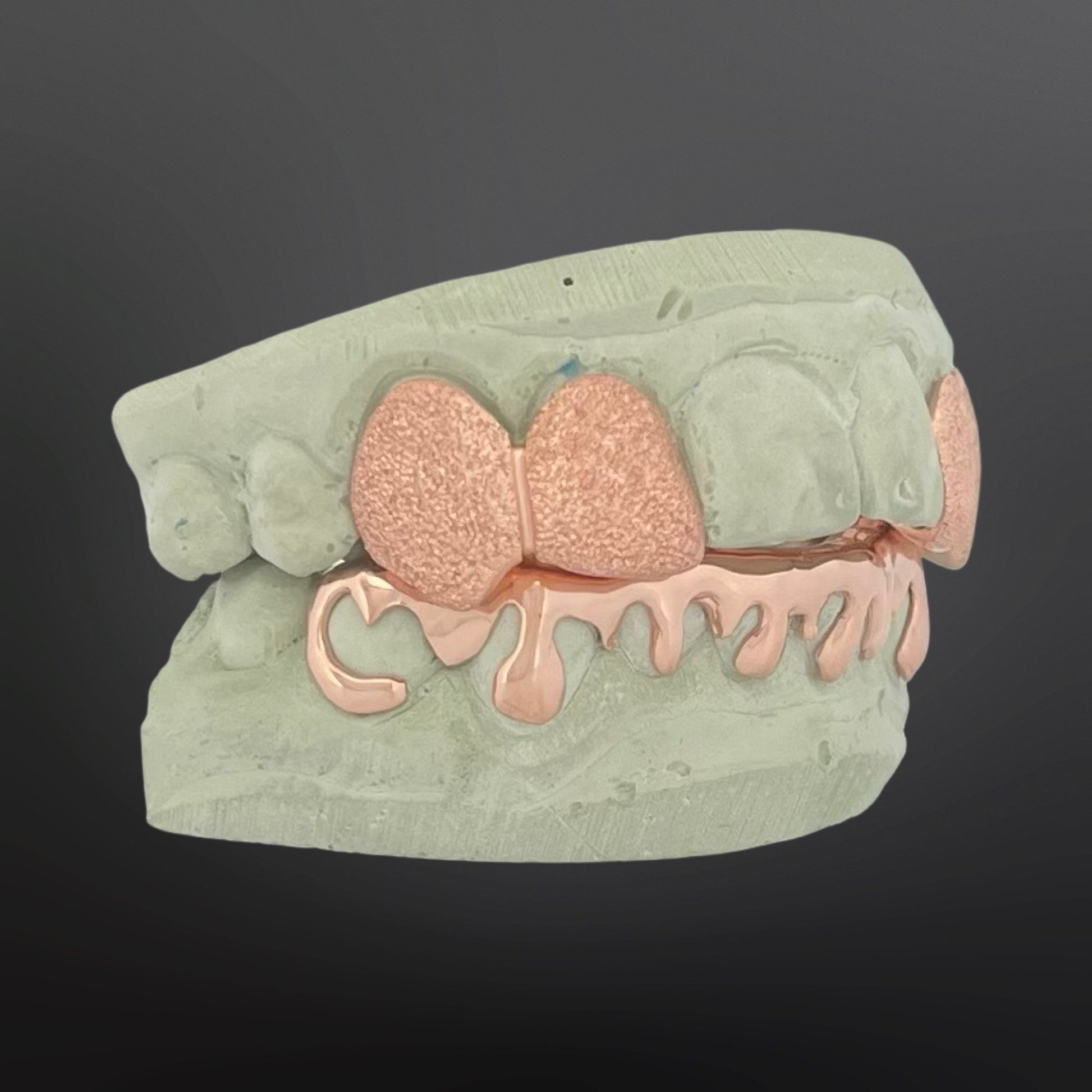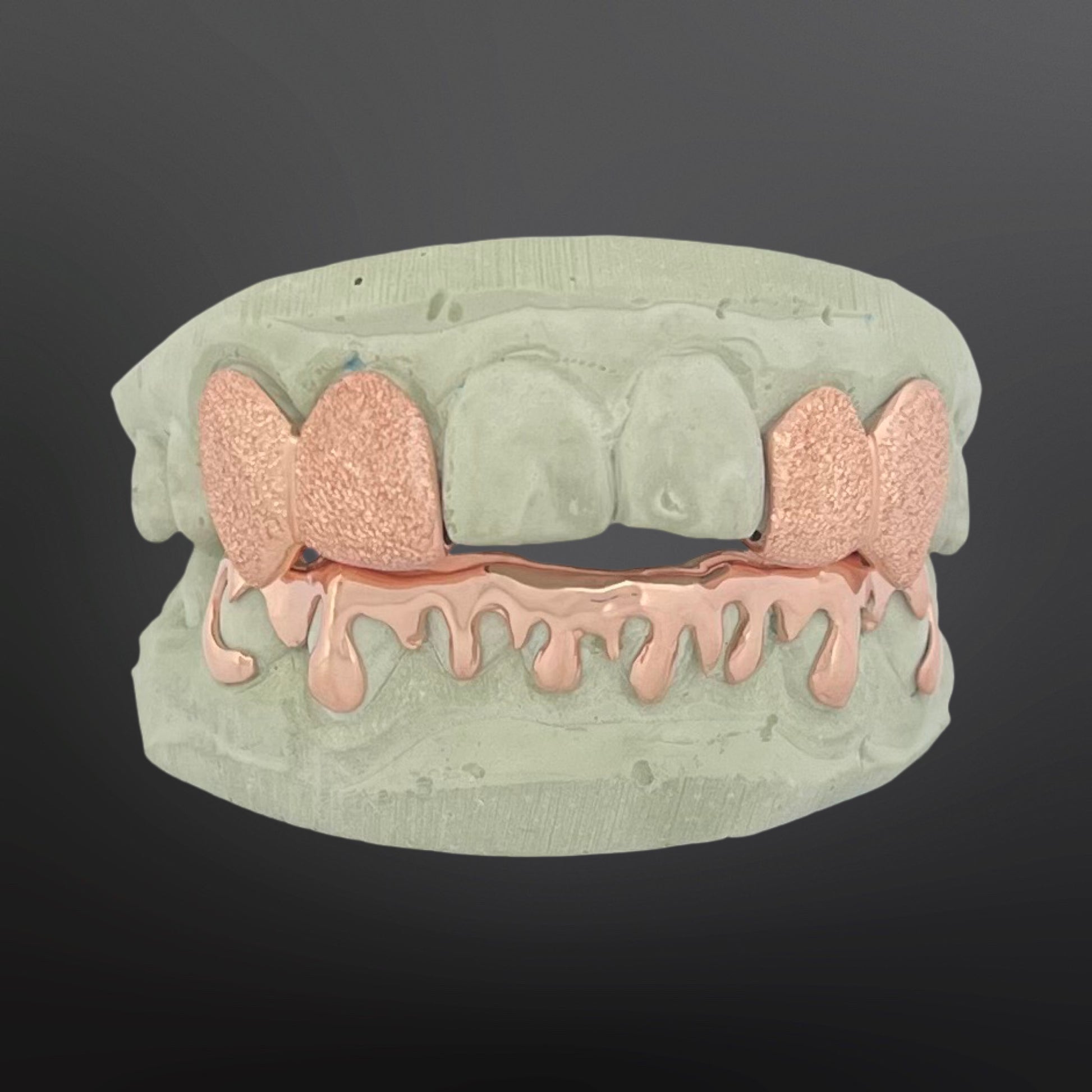 Diamond Dust Four Teeth Top With Back Bar And Drip Design Eight Teeth Bottom Full Set Silver Rose