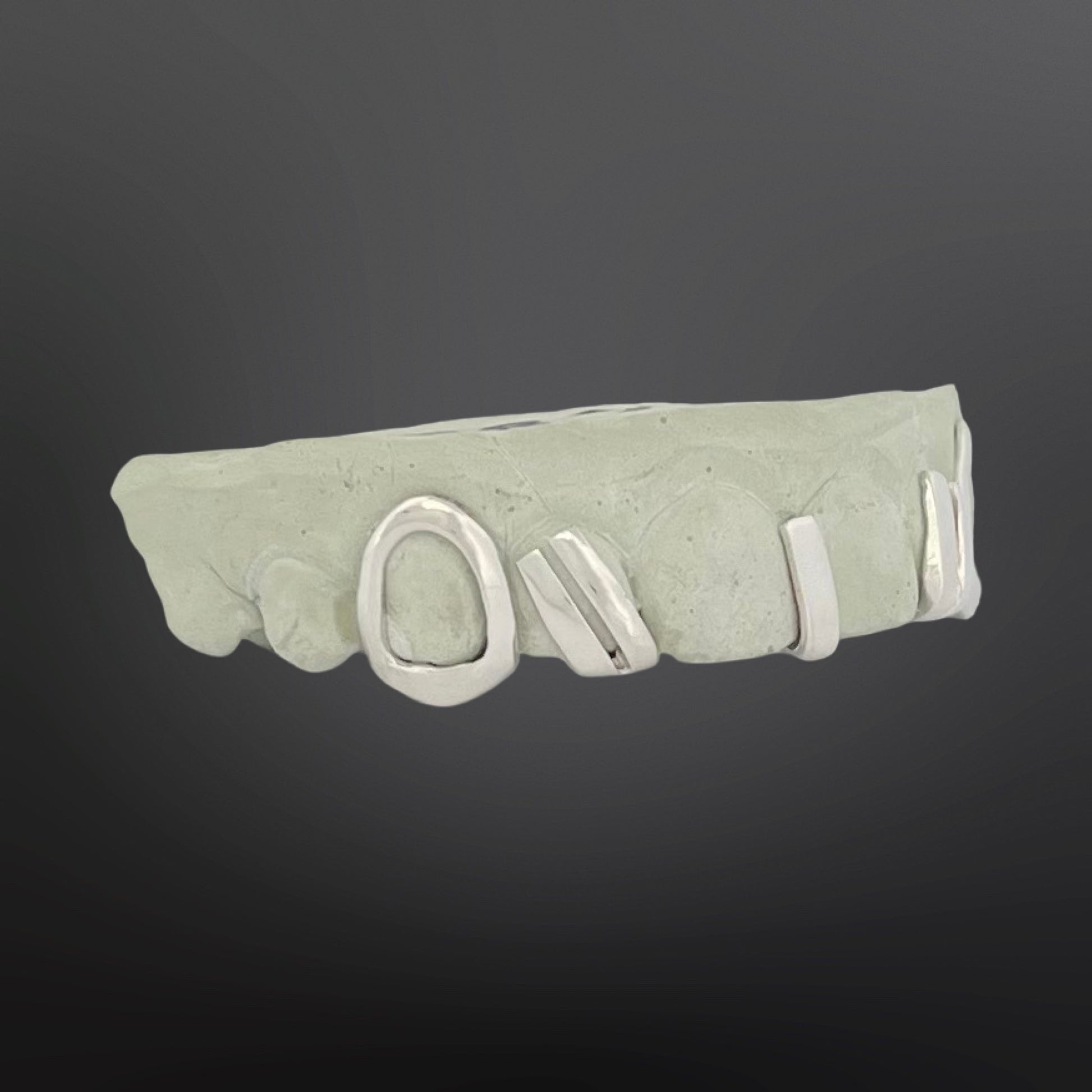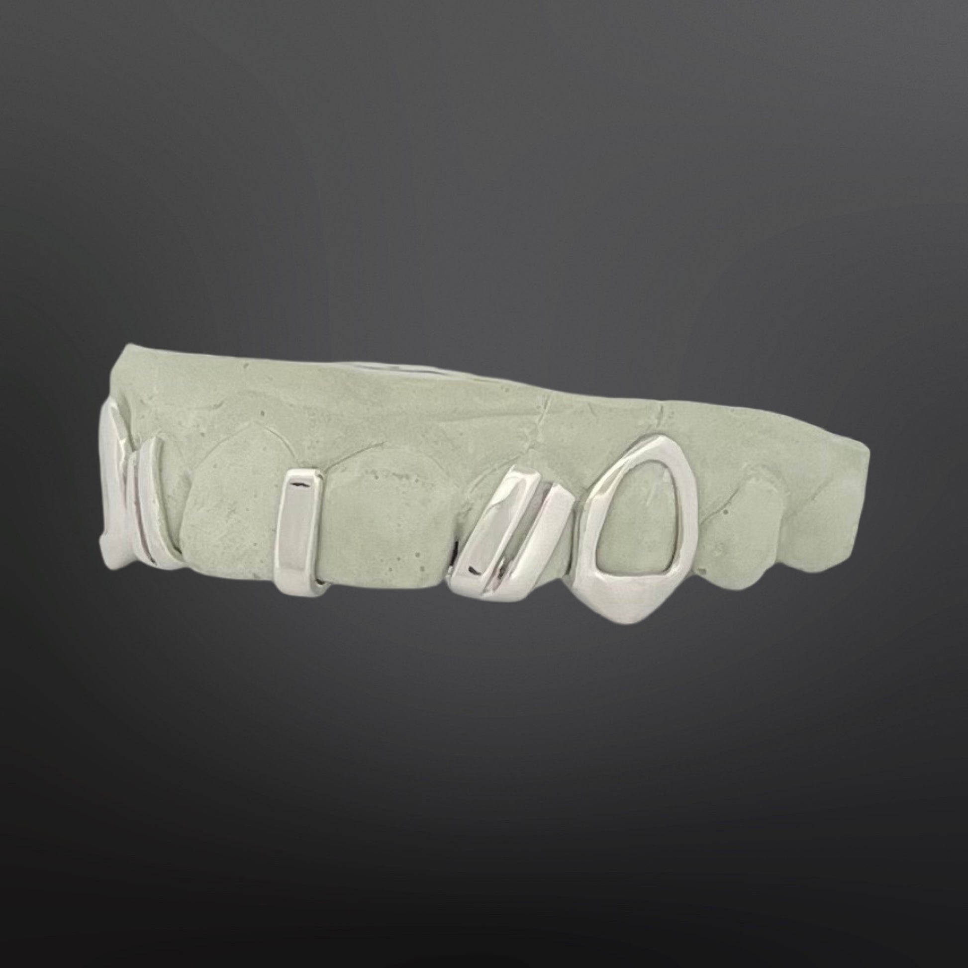 Open Face Fangs And Wing Design And Gap Fill Spacer With Back Bar Four Teeth Top Set Silver