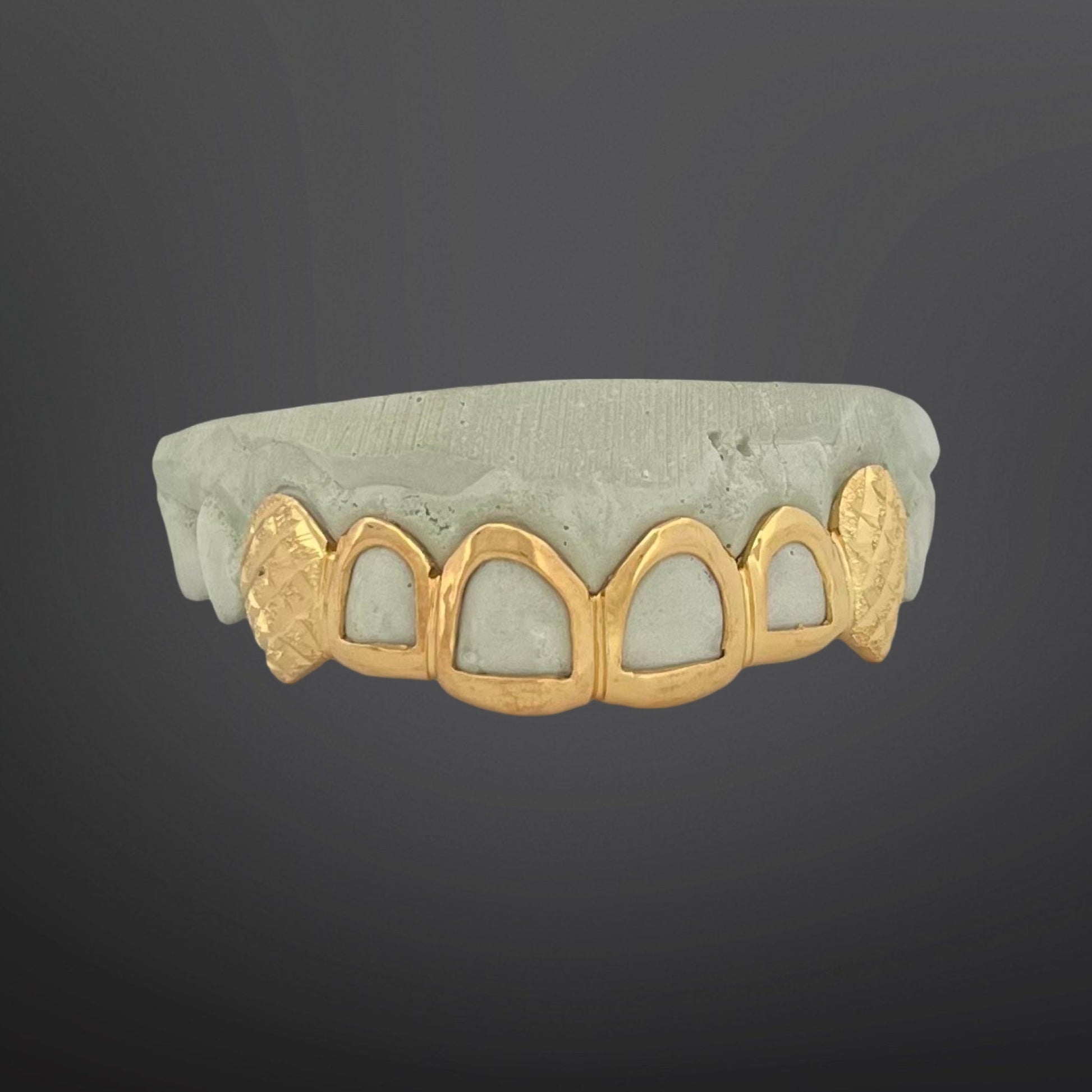 Plain Open Face Four Front Teeth And Diamond Cut And Diamond Dust Solid Fangs Silver Yellow