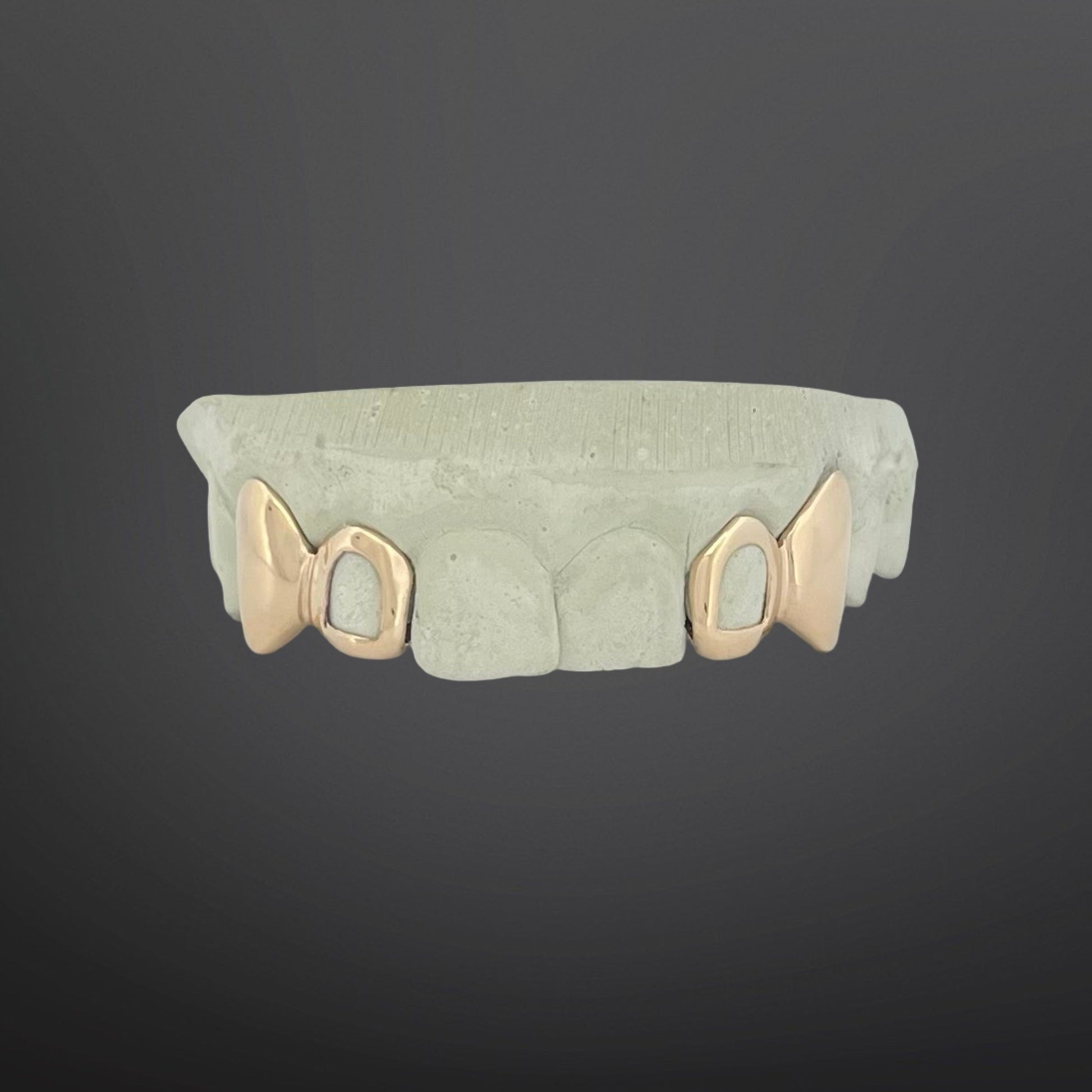Solid Plain Fangs And Open Face Four Teeth With Back Bar Top Set Natural Gold
