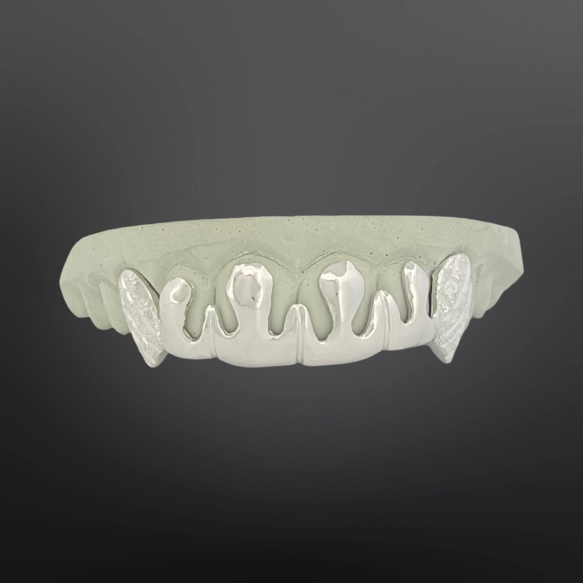 Solid Fang With Diamond Cuts And Diamond Dust And Drip Design Middle Six Teeth Top Set Silver