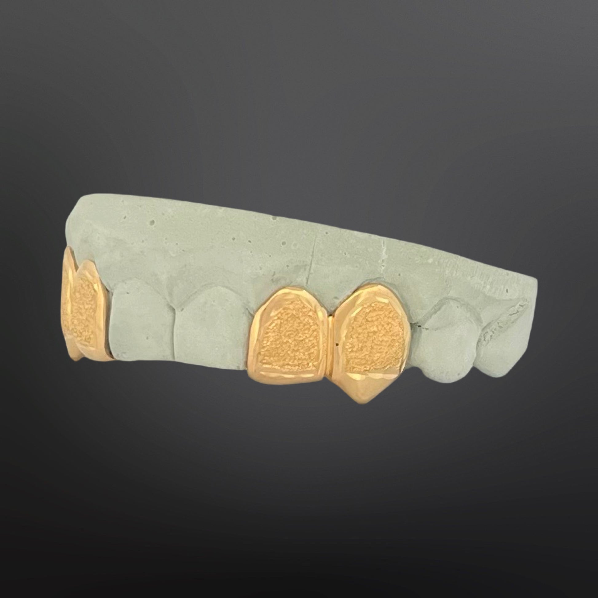 Solid Frames And Diamond Dust Center Four Teeth Top Set With Back Bar Silver Yellow
