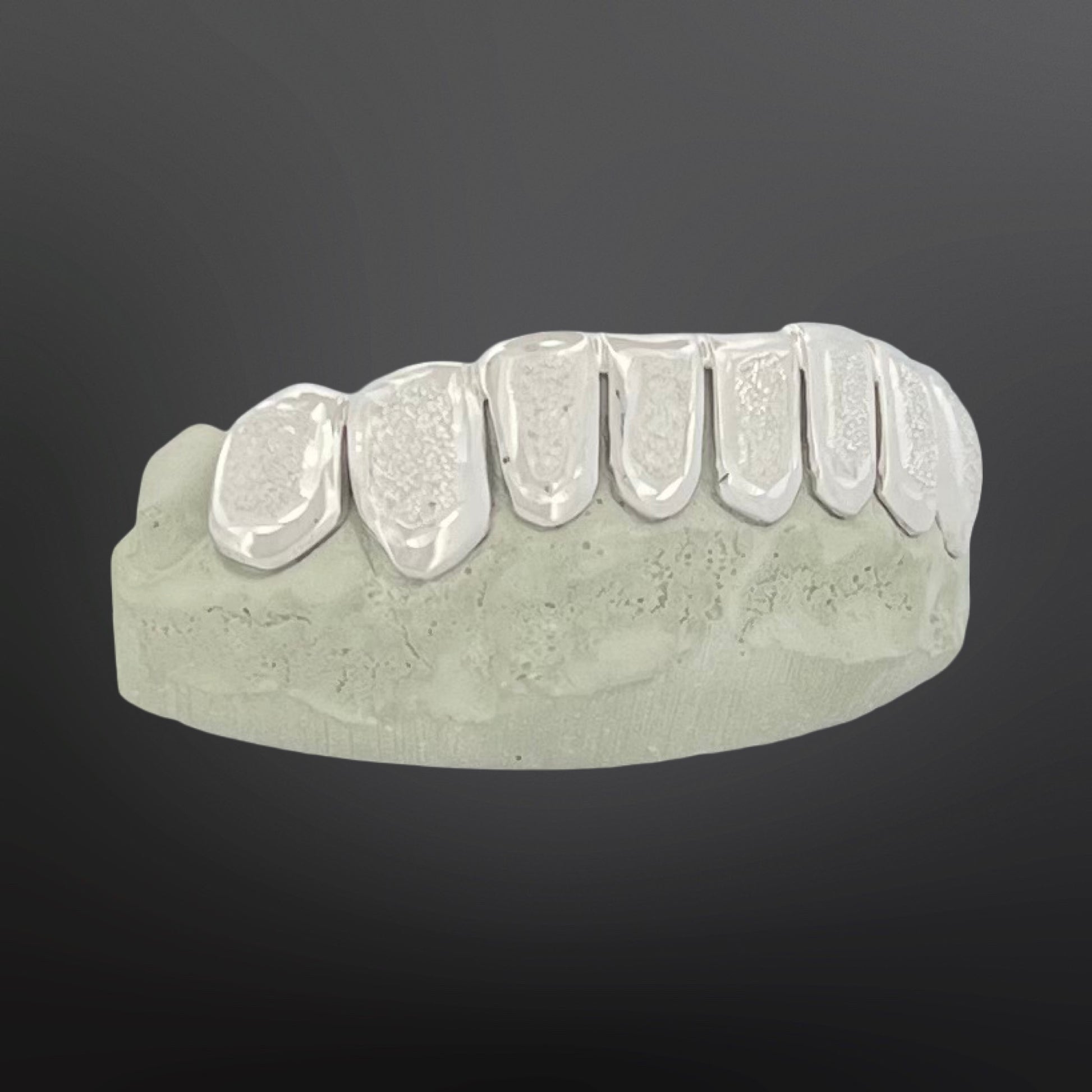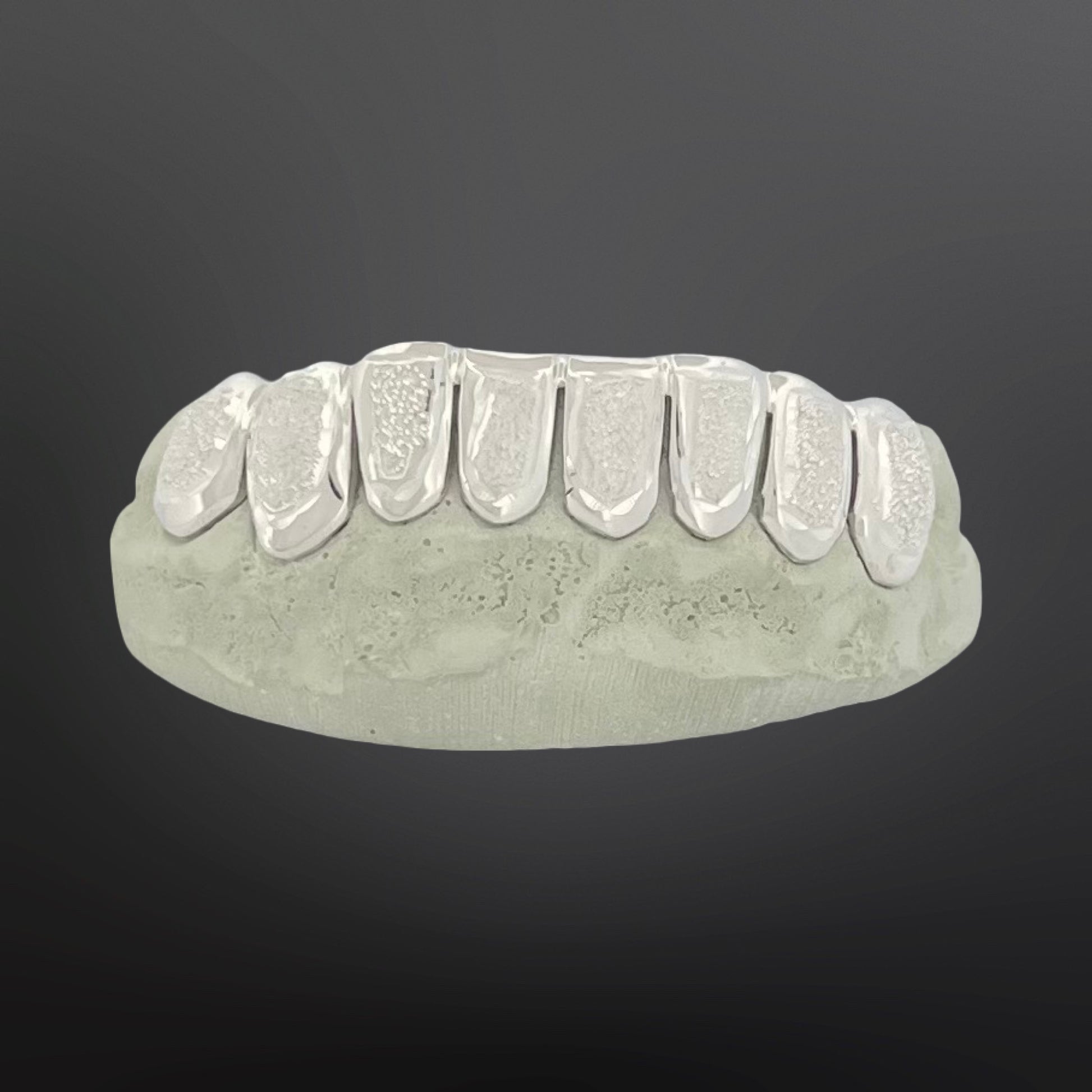 Solid Frames And Diamond Dust Center With Perm Cuts Eight Teeth Bottom Set Silver