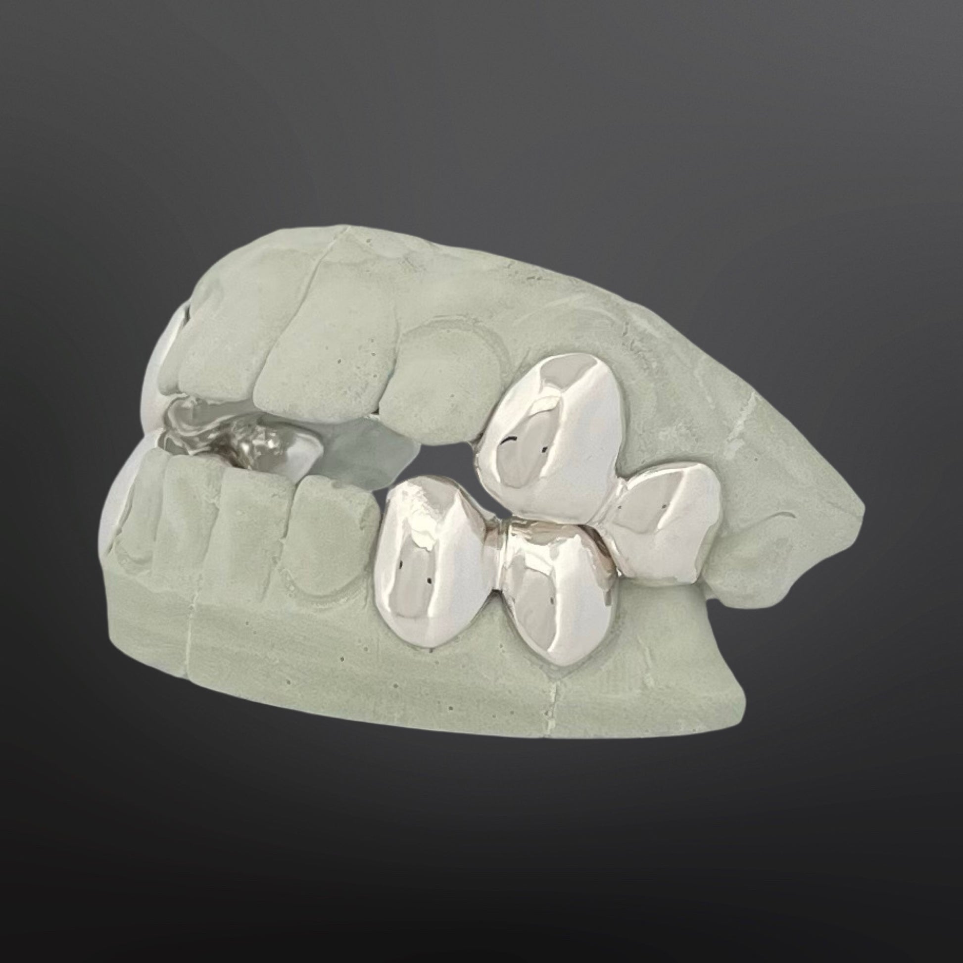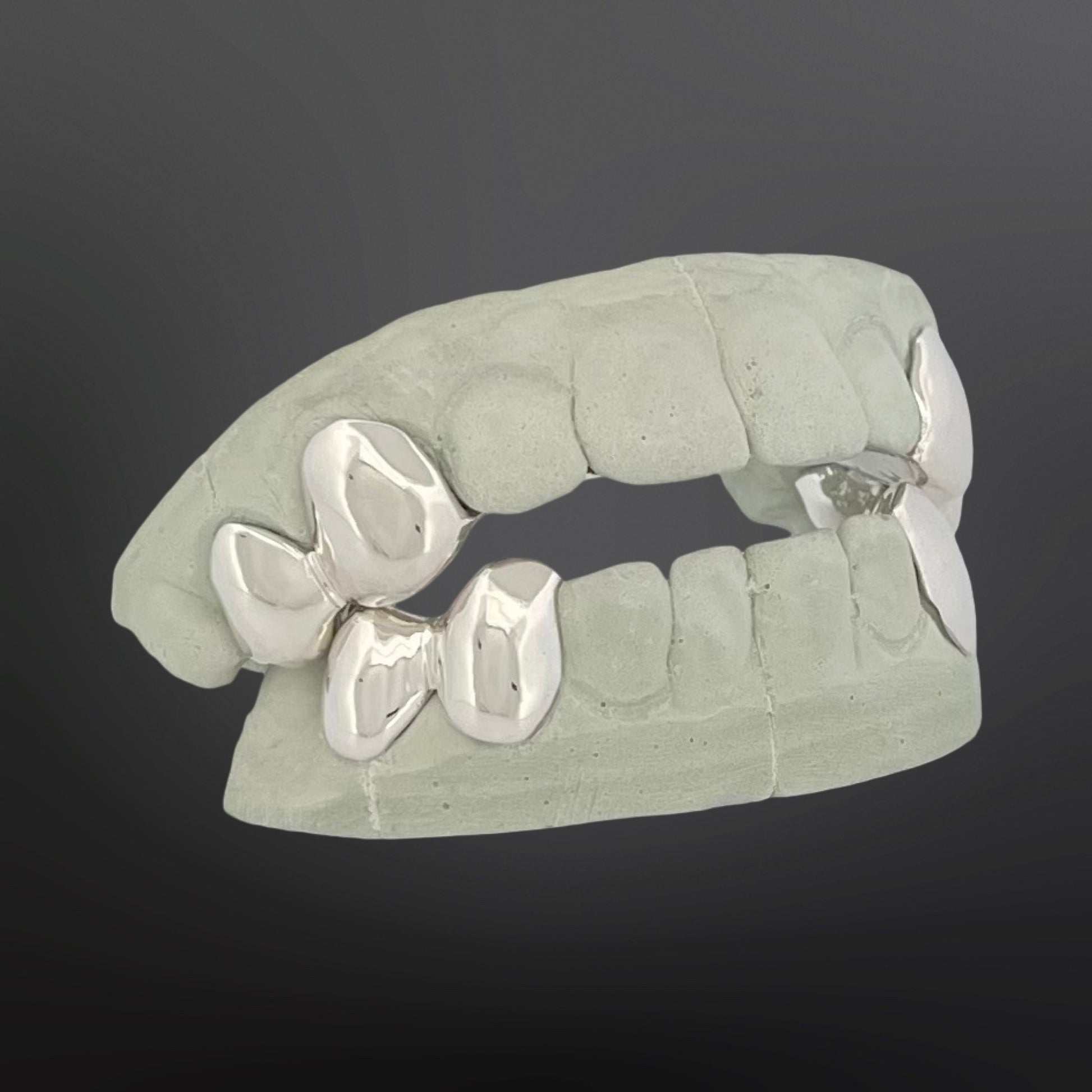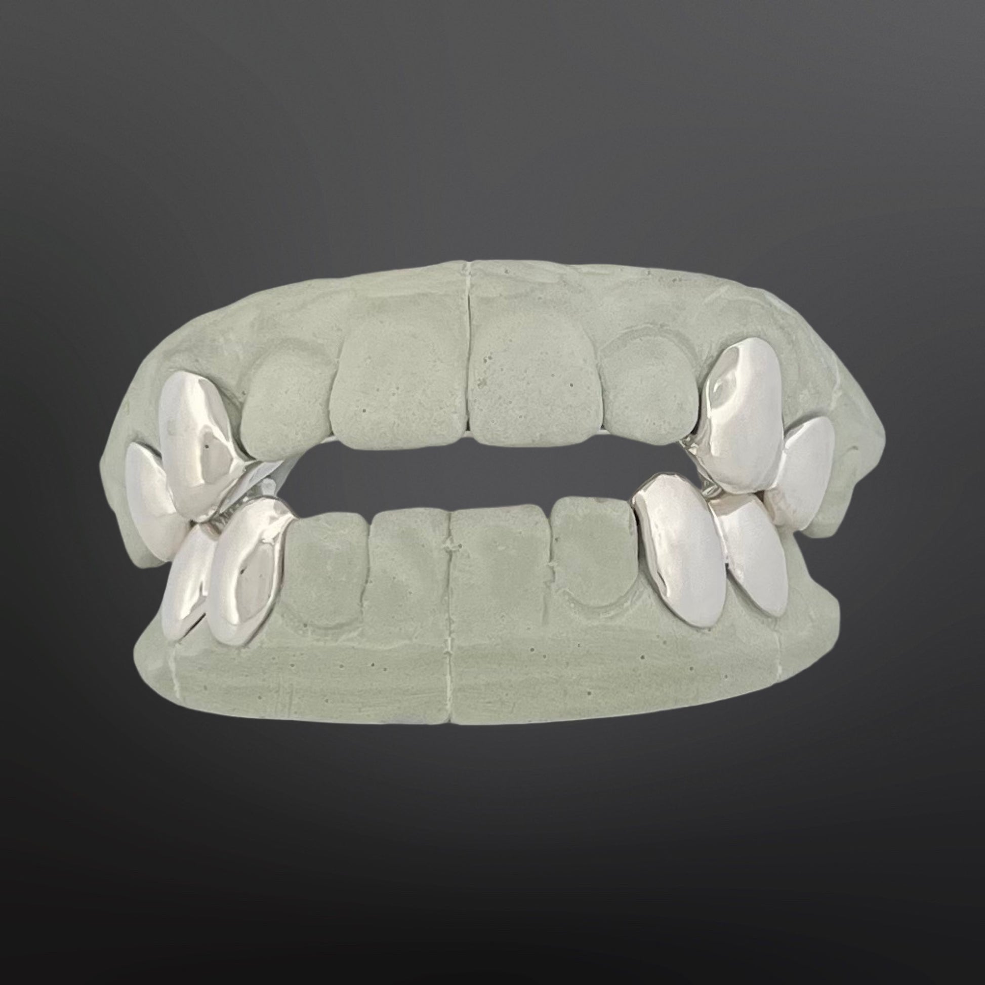 Solid Plain Four Teeth Top And Four Teeth Bottom With Back Bar Full Set Silver