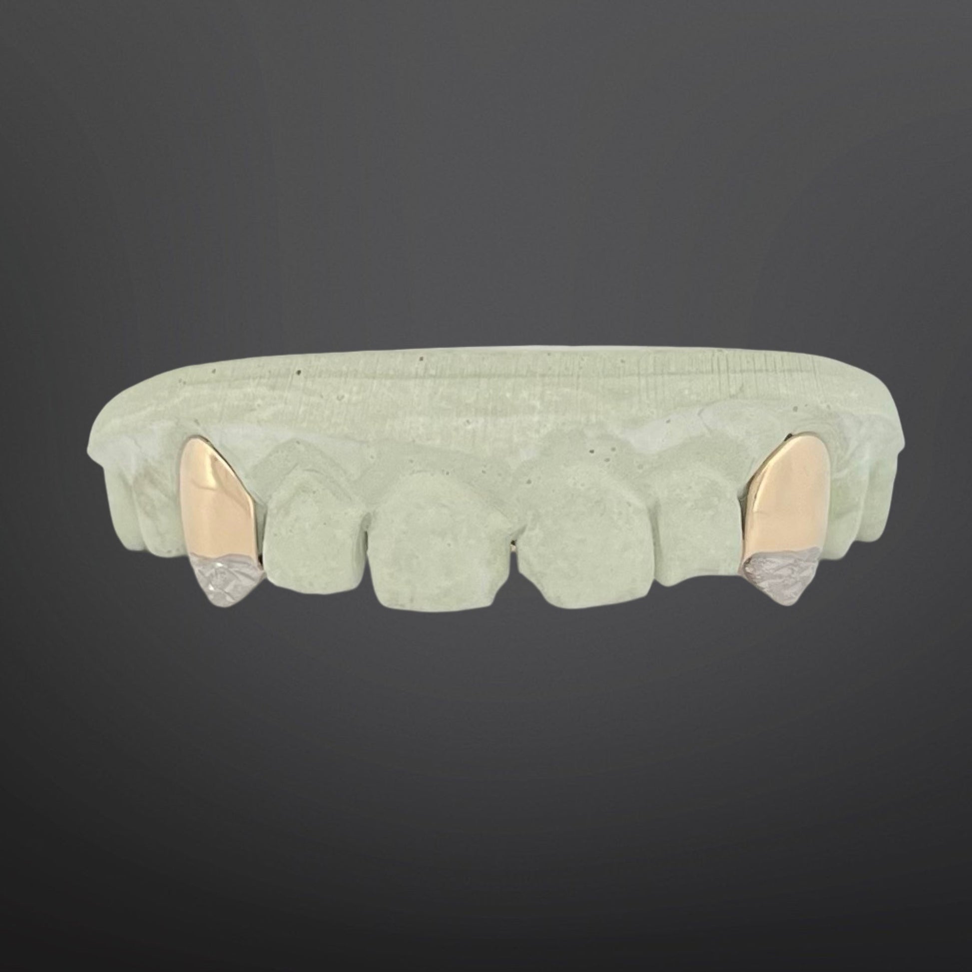 Two Tone Yellow Fangs And White Diamond Cut Tips With Back Bar Natural Gold