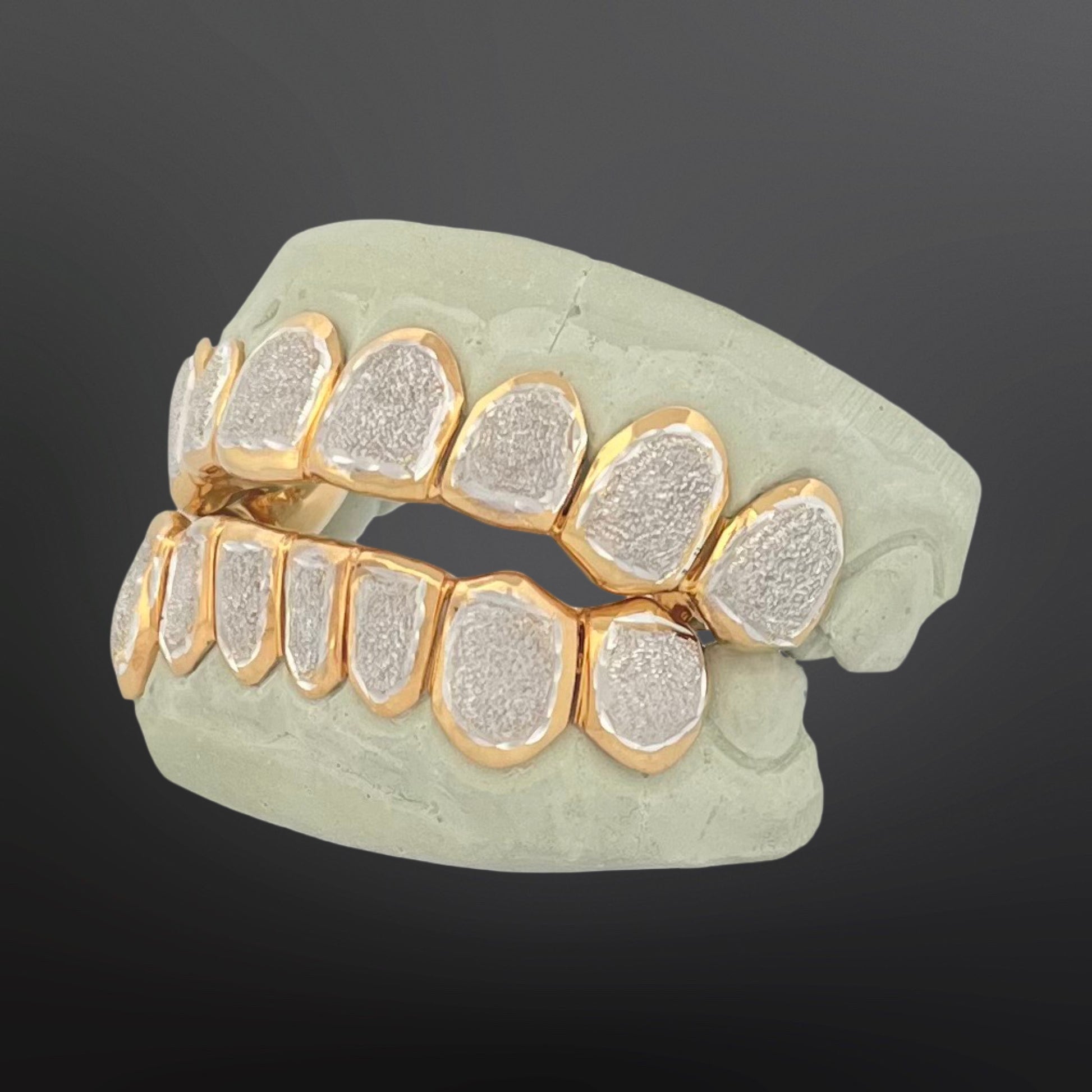 Two Tone Yellow Solid Frames And White Diamond Dust Center Eight Top and Bottom Full Set With Perm Cuts Silver